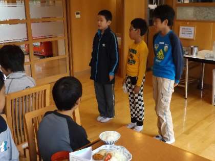 宿舎で最初の朝食です。子供たちの箸は動いているのですが,なかなか器に入っているものが減らないという感じです。元気に活動し,旺盛な食欲を見せてくれることを願っています。