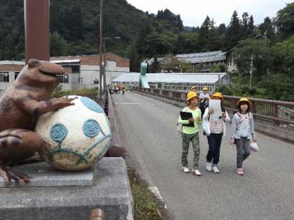 チェックポイント“かえる橋”です。中間地点であるここで休憩を取るグループが多かったです。