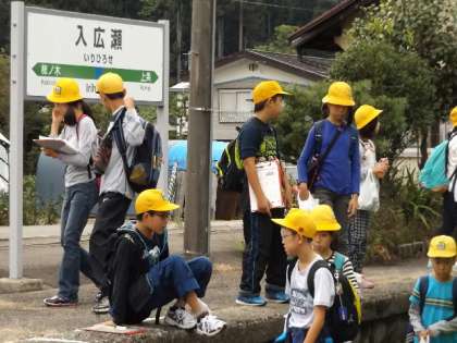 入広瀬駅です。単線,無人駅は,子供たちの“駅”の概念を超えていたようです。