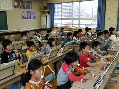 音楽では、リコーダーで「聖者の行進」の学習をしています。