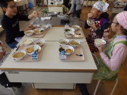 ご飯と味噌汁を作りました #4 公開日 2014/12/05 更新日 2014/12/05 できごと なかなかのできばえです。試食は,給食のおかずや牛乳とともにしました。友達の作ったものも“味見”する子もいました。 いいね(0)