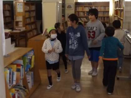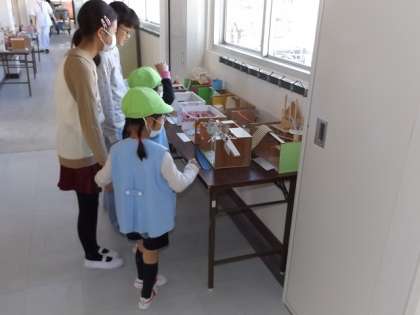 手をつないで,校舎内を案内しました。5年生の作品「ドリームスペース」には,興味津々でした。図書室では,1年生が授業をしていました。お兄さん,お姉さんの立派な勉強ぶりは,良い目標となったことでしょう。