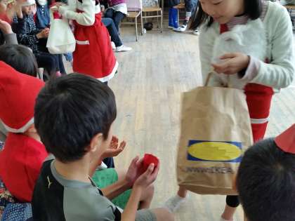 1組は昨日、2組は今日、クリスマス会を開きました。