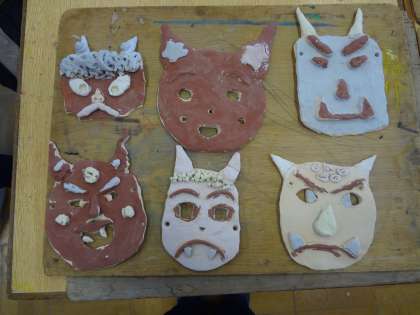 鬼のお面 公開日 2015/02/18 更新日 2015/02/18 できごと 3年生 2月18日(水) 鬼のお面づくりが進んでいます。いろんな顔の鬼たちが並びます。 「完成したら、家でもう一回 節分をやるんだ」 と言っている子もいて、微笑ましいです。 いいね(0)