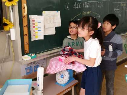 「これで1kgだと思う」と持ってきたノートやえんぴつの束が、本当にぴったり1kgになった子もいて、感覚のするどさに驚かされました。
