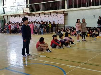 来年は4年生として、(左の写真のように)花のアーチを持ったり (右の写真のように)6年生と「対決」したりします。