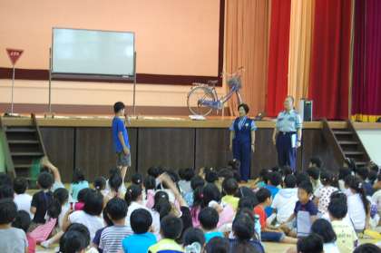 6月15日(月)の1時間目、全校を対象に交通安全教室がありました。
