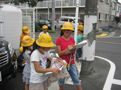 学校のまわりにどんなものがあるのかを実際に歩いて調べました。