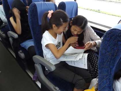 6年生「移動教室」1日目#03 公開日 2015/06/29 更新日 2015/06/29 できごと 7:40,予定より10分遅れで,バスは栃木県日光に向けて出発しました。早速,レク係が活躍しています。「私は誰でしょう?クイズ」で盛り上がっています。 いいね(0)