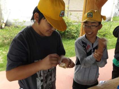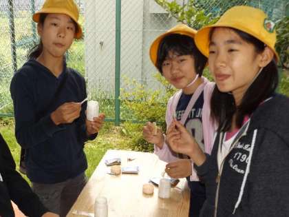 できたバターは,クラッカーにつけて試食しました。市販のもののように食塩が入っていません。しかし,子供たちは,「おいし〜」と言って,舌鼓を打っていました。