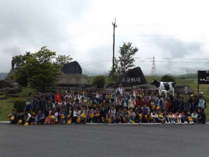 食後,まず,6年生全員で集合写真を撮りました。空には雲が多く,半袖では寒い感じでした。
