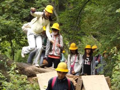 先週の豪雨で,木道の傷んでいるところがありました。声をかけながら,注意深く進みました。
