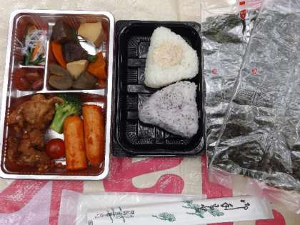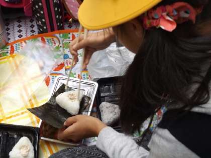 弁当のおにぎりの海苔は,手巻き式でした。風に飛ばされることなく(風は,ほとんどありませんでした),上手に巻いていました。