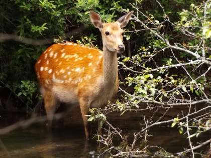 竜頭の滝を間近にしたところで,シカが出迎えてくれました。「かわい〜い」子供たちは,口々につぶやいていました。