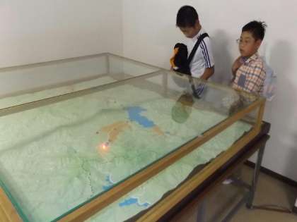 ハイキングは,誰も脱落することなく,全員笑顔で終えることができました。宿舎着は,予定より40分も早い,15:00でした。他の学校とバッティングすることがなかったこと,道路の横断がスムーズだったことなどが,その理由です。時間に余裕があったため,第1体育館前のジオラマをゆっくり見ることもできました。