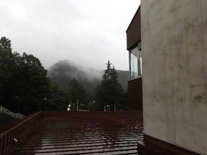 おはようございます。移動教室最終日です。夜中から,雨音が聞こえていました。それは,朝になってもやみませんでした。