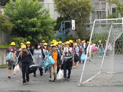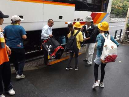 6年生「移動教室」3日目#24 公開日 2015/07/01 更新日 2015/07/01 できごと 13:25,バスは,懐かしい北葛西の地に到着しました。主事さんが,リヤカーをもって迎えにきてくれました。雨は小降りになり,傘を差さずに体育館に移動することができました。 いいね(0)