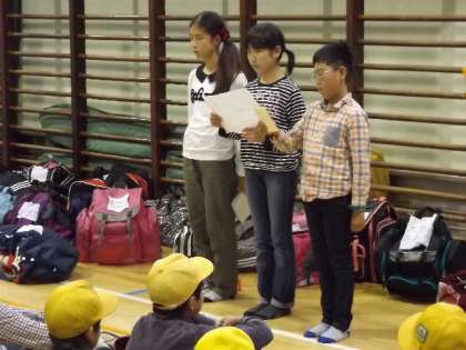 予定より30分以上早く着いてしまったため,保護者の方のお出迎えは間に合わなかったようです。「帰校式」の代表の言葉には,充実した活動ぶりだけでなく,お世話になった方への感謝の言葉もたくさんありました。大きく成長したことがうかがわれました。