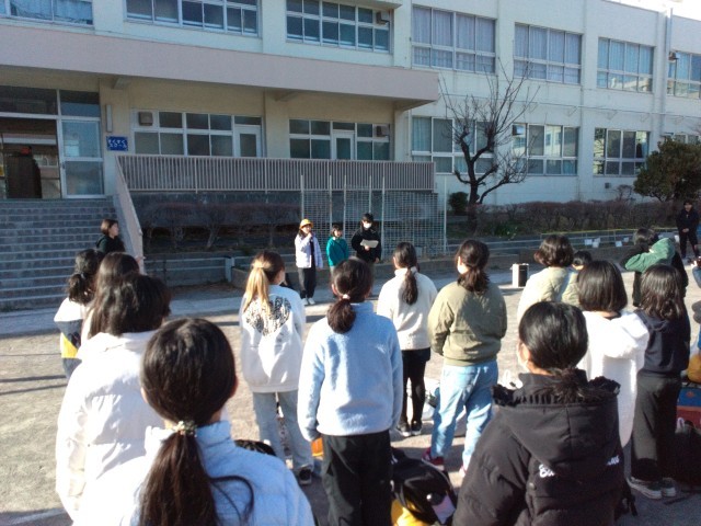 クラスごとに写真を撮ったあと、グループごとに分かれて練習しています。