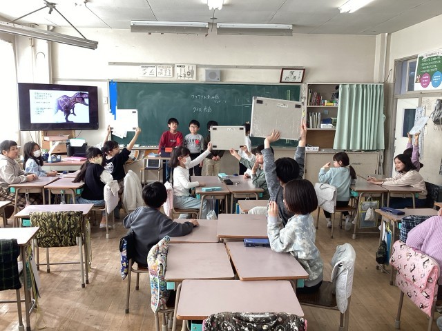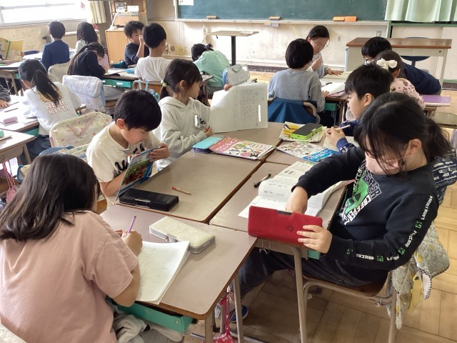 2年生は国語の授業で漢字クイズをしました。二つの漢字を合体させて漢字を作ったり、...