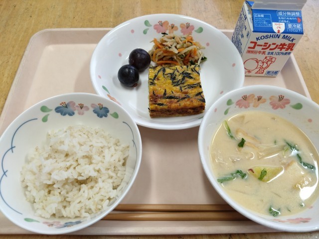ぶどうは、秋が旬の果物です。先週がシャインマスカットだったので、今回は「種無し巨峰」を提供しました。給食では、1粒1粒給食室で丁寧に洗い、キズや傷みがないことを確認してから提供しています。さすが旬の果物であるからか、とても甘く、子どもたちもよく食べてくれていました。