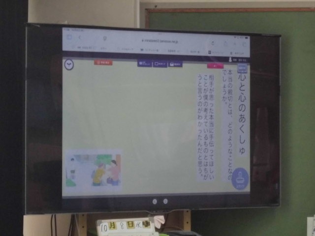 4時間目の道徳の授業で「心と心のあくしゅ」親切・おもいやりの価値項目です。本当の親切とはということで自分の考えを深めました。
