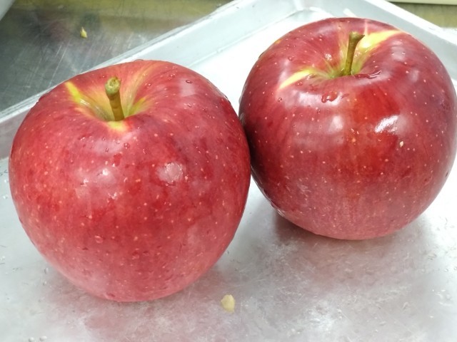 ※写真のりんごは、本日の洗った「シナノスイート」です。