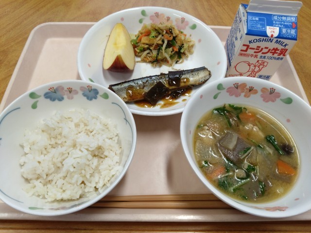 松前煮とは、昆布が入った煮物の1つで、北海道にある「松前地方」という場所が名前の由来だそうです。今日は角切り昆布を入れて、生姜やにんにくなどの香味野菜を入れた煮汁でじっくりと秋刀魚を煮た「秋刀魚の松前煮」を提供しました。骨まで食べられるようにと煮ましたが、子どもたちからも、「ほねが…」や「おいしかったけど」という声がいくつかあったので、骨ごとというのが苦手な子が多かったようです。給食室に返却される食缶が、いつもの魚献立のときより重い状態で返ってきました。