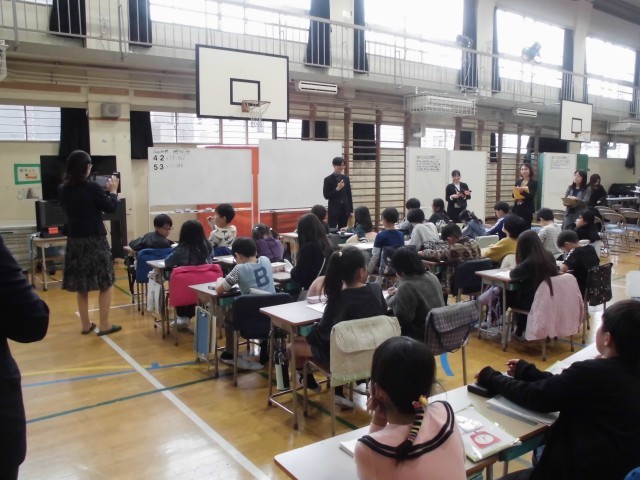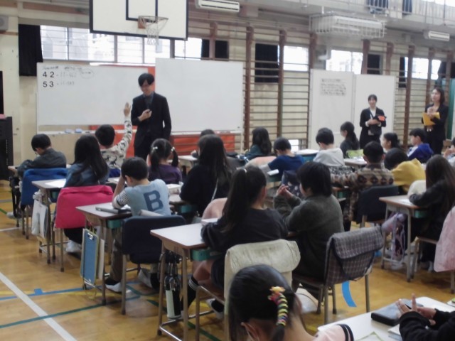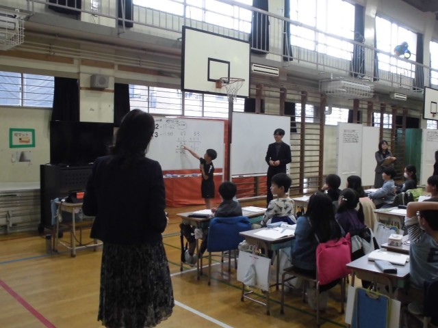 11月5日(水)5校時、3年生・研究授業の様子です。本日は算数「2けたの数のかけ算」を学習しました。これまでに学んできたことを活かし、□□×11の計算を通して答えの秘密を考え、友達に説明し合いました。児童は計算の秘密を理解すると、類似問題も簡単に解けることに感動していました。