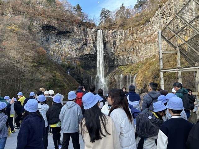 日本三代大名爆の華厳の滝を見学しました。スケールの大きな滝に児童はびっくりした様子でした。