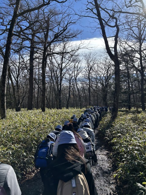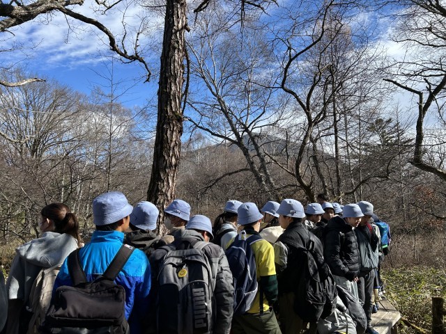 湯滝からいよいよハイキングのスタートです。マイナスイオンをたっぷり浴び、綺麗な景色を眺めながら木道を歩きます。
