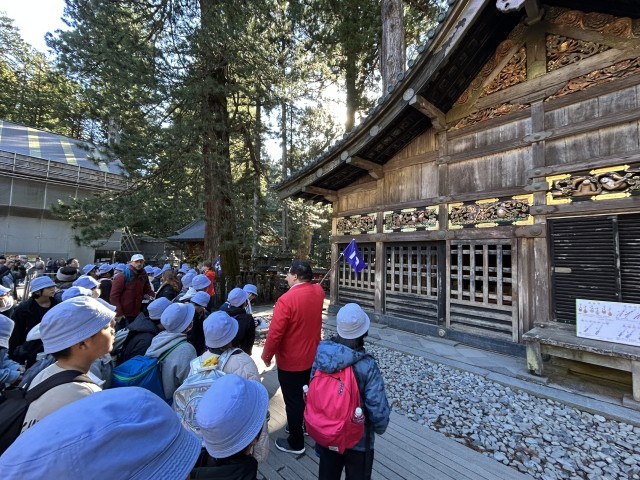本日午前中のイベントである『日光東照宮見学』の時間になりました。ガイドさんの説明を受けながら、実際に自分の眼で三猿や眠り猫、陽明門、鳴き龍を確認して感動した様子でした。ガイドさんの説明後は班での自由行動タイムです。