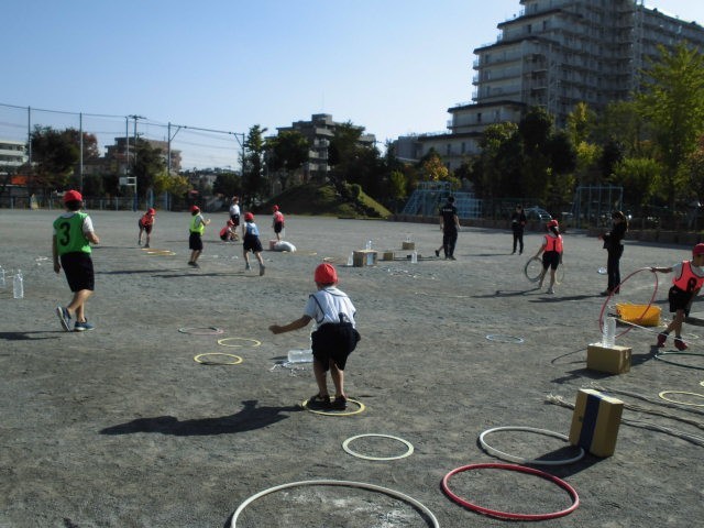 今日の午後は、全校の先生が2年生の一クラスの体育の授業を見て授業改善につなげる研究会を行いました。子ども達は、「跳の運動遊び」を自分のできるようになりたい動きにふさわしい場や用具の使い方を考え、工夫します。遊び感覚なので夢中になって運動をしています。タブレットで自分の跳ぶ姿を友達に撮影してもらって確認したり、振り返りも素早く書いて後片付けまで頑張ったり、、、。みんな、とてもよい表情で運動をしており、見ている先生たちも笑顔になりました。