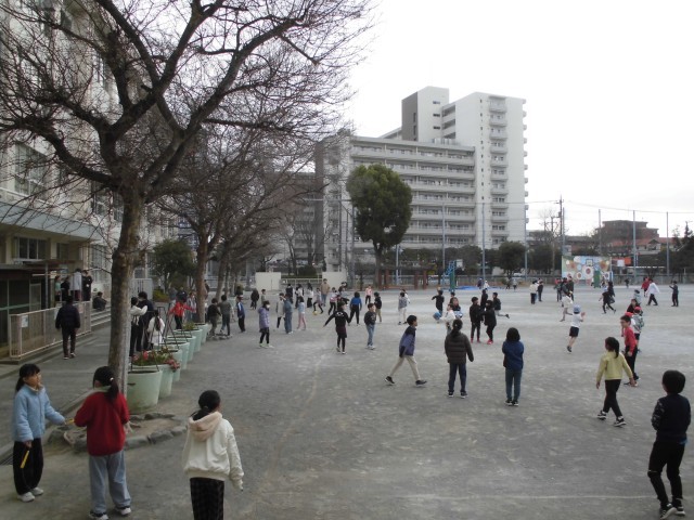 1月21日(水)の中休みの様子です。普段は込み合った中での怪我防止のため、低学年・高学年で中休みと昼休みの使える学年を決めて遊んでいます。今日は試験的に全校児童が遊べる中休みとし、校庭の込み具合や外に出て遊んでいる児童の様子を調査しました。日差しが乏しくとても寒い中休みでしたが、多くの児童が校庭に出て元気よく遊んでいました。また、怪我をする児童もなく、安全に遊ぶことができました。