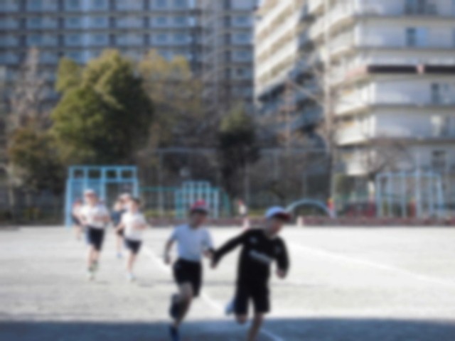 高学年は時間走と距離走、低学年は時間走のみ。低学年はきょうだい学年のお兄さんお姉さんに記録をしてもらいます。終わってから、「みんな、自分の力を発揮できましたか?」の先生からの質問に「ハイ!」と元気よく答えています。「高学年のみなさんも、しっかり記録が取れましたか?」という質問にも「ハイ!」という力強い声が聞こえました。