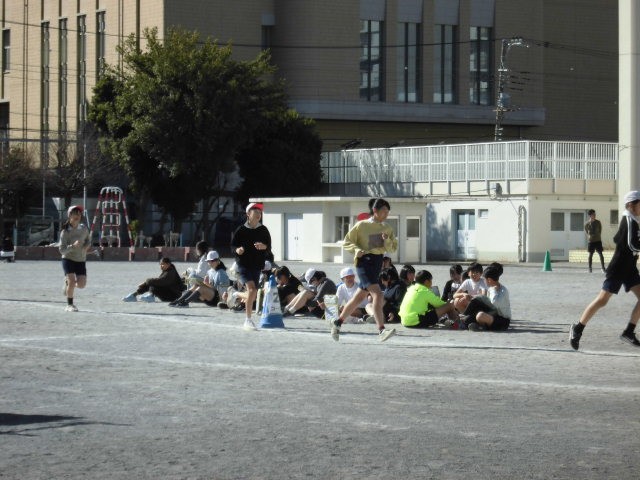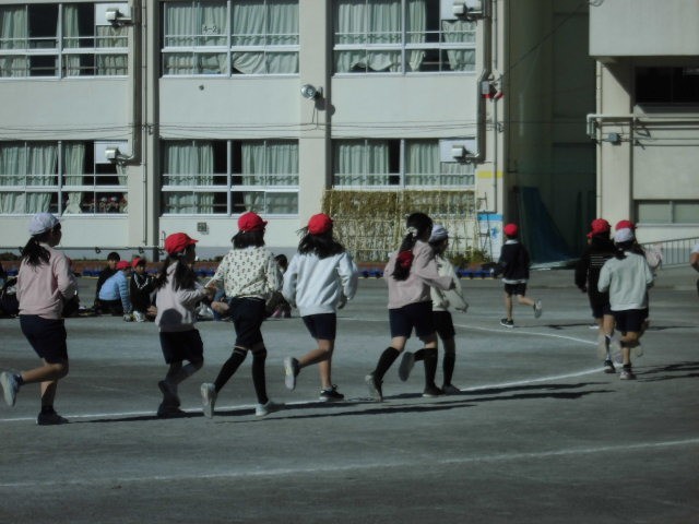 学年が上がるにつれ、走りもしっかりと力強くなります。校庭に応援の声が響いています。応援する声も低く太くなっていきます。持久走大会は、一年ごとの成長を感じる一時です。