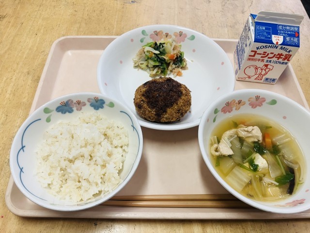 今日は郷土料理として、私たちが住んでいる「東京都」の郷土料理を提供しました。江戸ちゃんコロッケは、江戸川区の特産品である「小松菜」をたくさん使用したコロッケです。いつものコロッケはじゃが芋がメインですが、今回はさつま芋をメインにすることで、小松菜の苦みがわからないようにしてみました。子どもたちはいつものコロッケより甘くておいしいと好評だったようです。また、両国にある国技館は相撲の聖地ともいわれているそうで、この相撲文化から生まれた料理に「ちゃんこ」があります。この「ちゃんこ」を給食風にアレンジし「ちゃんこ汁」を提供しました。今回の給食が住んでいる東京の味を知る良いきっかけになればいいなと思っています。