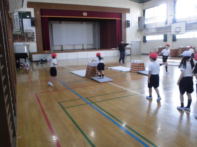 2月5日(木)2校時、2年生の体育の授業の様子です。体育館では、「跳び箱」の学習を行っていました。自分の練習したい高さの跳び箱を選び、跳び越せるように一生懸命に取り組んでいました。