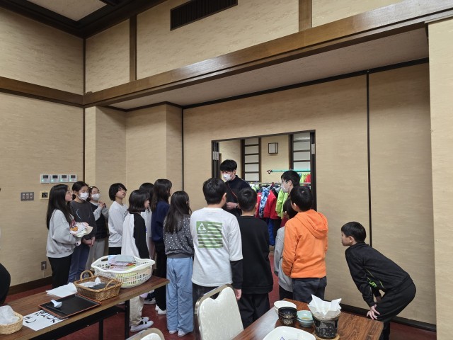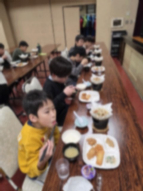 雪遊びの後は、お風呂とスキー靴のはきかたのレクチャーを受け、その後はお待ちかねの夕食でした。