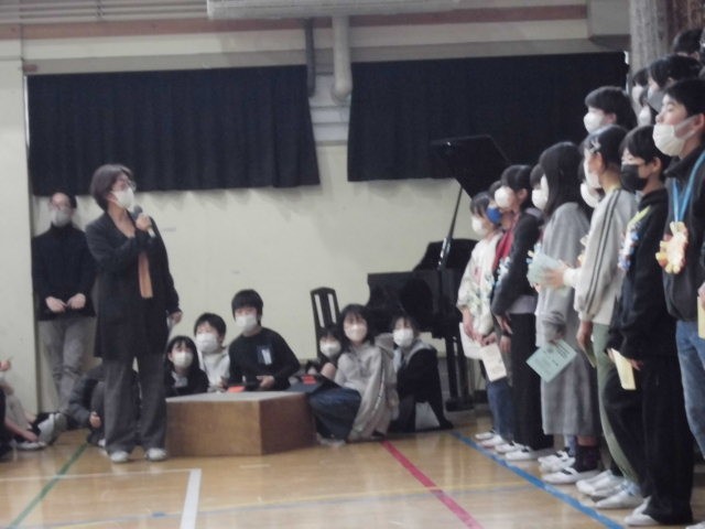 最後は全校で「きみとぼくのラララ」を歌いました。みんなの優しい気持ち、温かい気持ちが伝わる2部合唱でした。