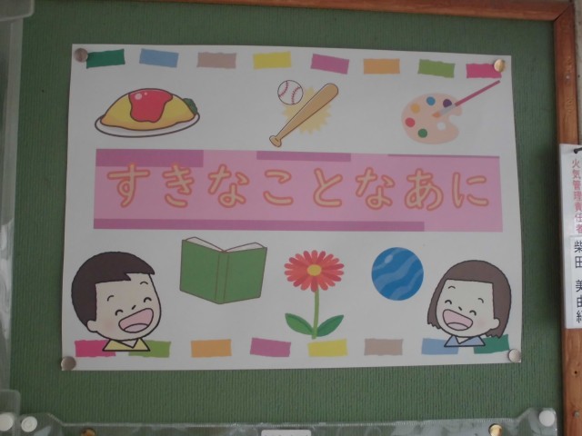 4月20日(月)の2年生の廊下の様子です。「すきなこと なあに」というテーマで、児童それぞれの好きなことを絵画にしました。素敵な作品が完成しました!