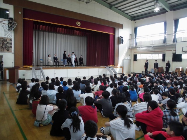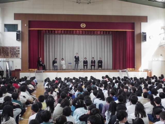 4月17日(金)の5~6校時に、離任式を行いました。この春、異動された教職員をお招きし、これまでの感謝の気持ちと「新たな場所でお互いにがんばっていきましょう!」という約束をしました。