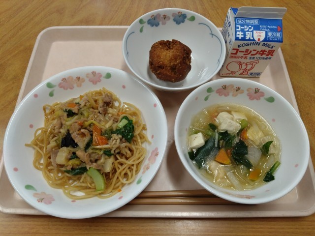 今日の給食は子どもたちに大人気の献立でした。特にダールー麵と開口笑をおかわりする子どもが多く「麺が大好き!」や「ドーナッツがおいしい!」という言葉をもらいました。また、ダールー麺のあんかけの中に入っている野菜を一つ一つ教えてくれる子どももいました。ただ、食べるだけではなく、「何がはいるんだろう?」や「これがおいしい」という考え方から、給食を通して食材に興味を持つことが、とても素晴らしいと思いました。その考え方を忘れず、学校生活に生かしていけるよう、気づきのある給食を提供していきたいと思います。