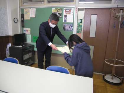 今日の全校朝会(放送)で、健康努力賞を受賞した3名の6年生を表彰しました。3人とも6年間ほとんど毎日登校し、元気に生活しました。今日は、表彰とともに健康の秘訣について聞いてみました。3人からは、「早寝・早起きを心掛けること」「体をよく動かすこと」「気持ちを明るくすること」という答えが返ってきました。また、お家の人に健康に過ごせるようにアドバイスをもらっているという話もありました。今日表彰された3人のように、健康に暮らせるように、毎日できることに取り組んでいきたいですね。