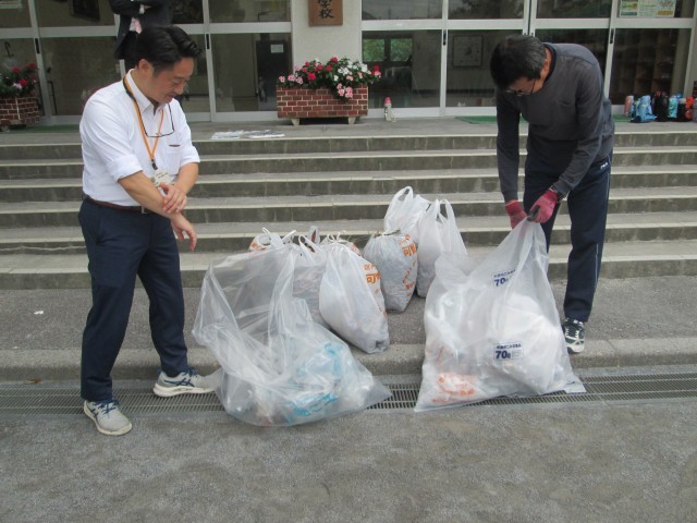 今日は、全校で美化活動を行いました。季節柄落ち葉がとても多く、いくつものビニール袋がいっぱいになるほどでした。