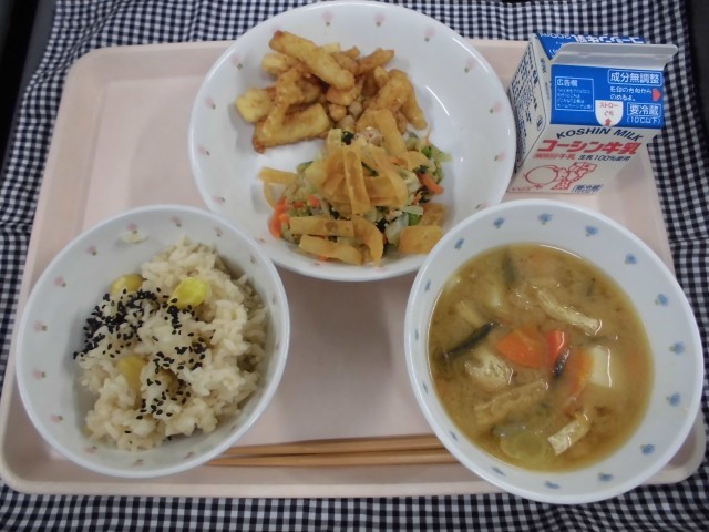すりつぶした大豆が入ったみそ汁です。大豆と野菜の栄養がとれます。