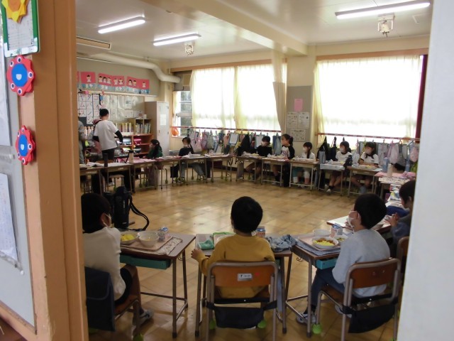 今日は、たてわり班給食でした。5,6年生が給食の準備をして、みんなで楽しく食べました。
