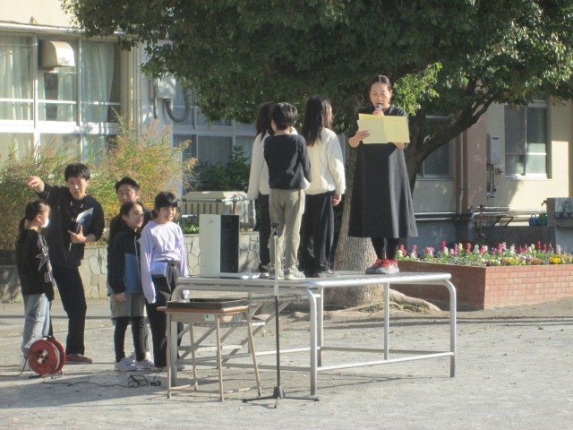今日は快晴です。全校朝会で、読書感想文、歯のポスターコンクールの表彰式が行われました。