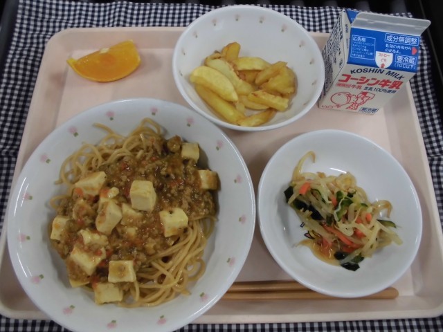 マーボー豆腐は野菜や豆腐を、とんこつでとったスープで煮込み、豆板醤、赤みそ、しょうゆ、塩、さとうで味付けをしています。
