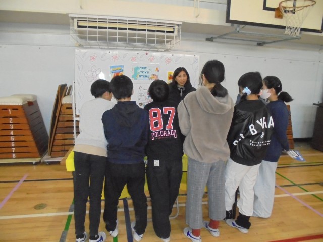 イングリッシュキャラバンで外国語の学習をしました。英語を話す先生と、楽しく会話をしました。